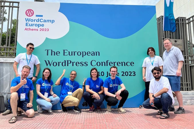 In our first big meetup post-COVID, most of the Uncanny team was able to travel to Athens in June for WordCamp Europe. It was an incredible opportunity for our team, families and peers to connect in a gorgeous location. From left to right, here’s a picture of David, Ken, Dani, Brendan, Nastia, Agus, Manal, Saad and Ryan in front of the Athens conference centre: