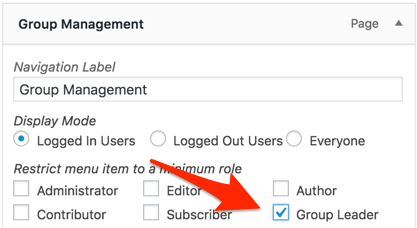 This is really a key starting point. With our Groups plugin there are some pages only intended for Group Leaders, and it’s important not to expose them to regular students and other roles. For setting this up we like the Nav Menu Roles plugin, which allows you to set up your menu entries so that you can control what people see based on their role. Set up an entry for the Group Management page that only Group Leaders can see; this will help a lot. (If you use that plugin, make sure you disable the Menu Item Visibility module in the Uncanny LearnDash Toolkit if you use it; they will conflict otherwise.)