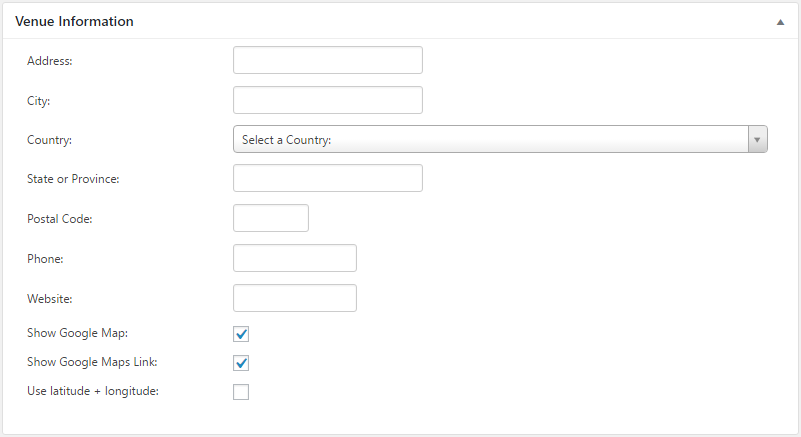 Note: If you wish to use Google Maps, make sure the address or latitude/longitude information is accurate so the location can be displayed accurately on the map. - When you are done, click Publish to save the new venue.