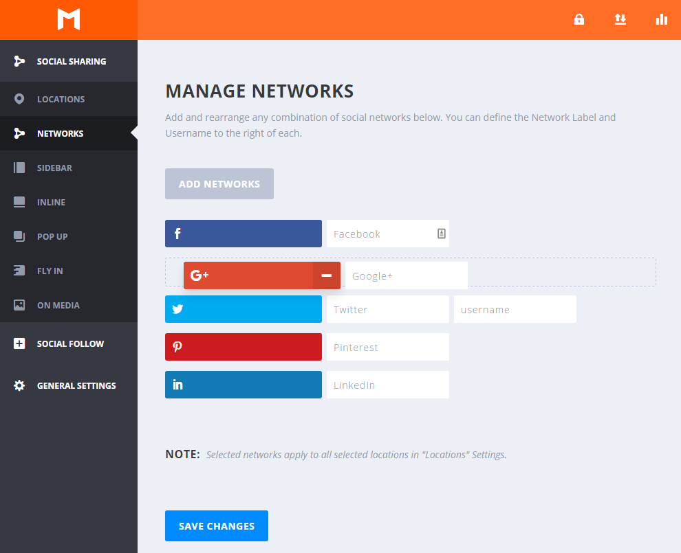 3. You can re-arrange the list of social networks into a specific order by dragging them up or down.