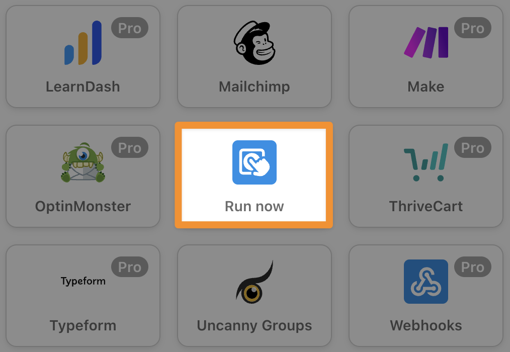 From the menu of available integrations, select Run now then select Trigger recipe manually from the drop-down list that appears.