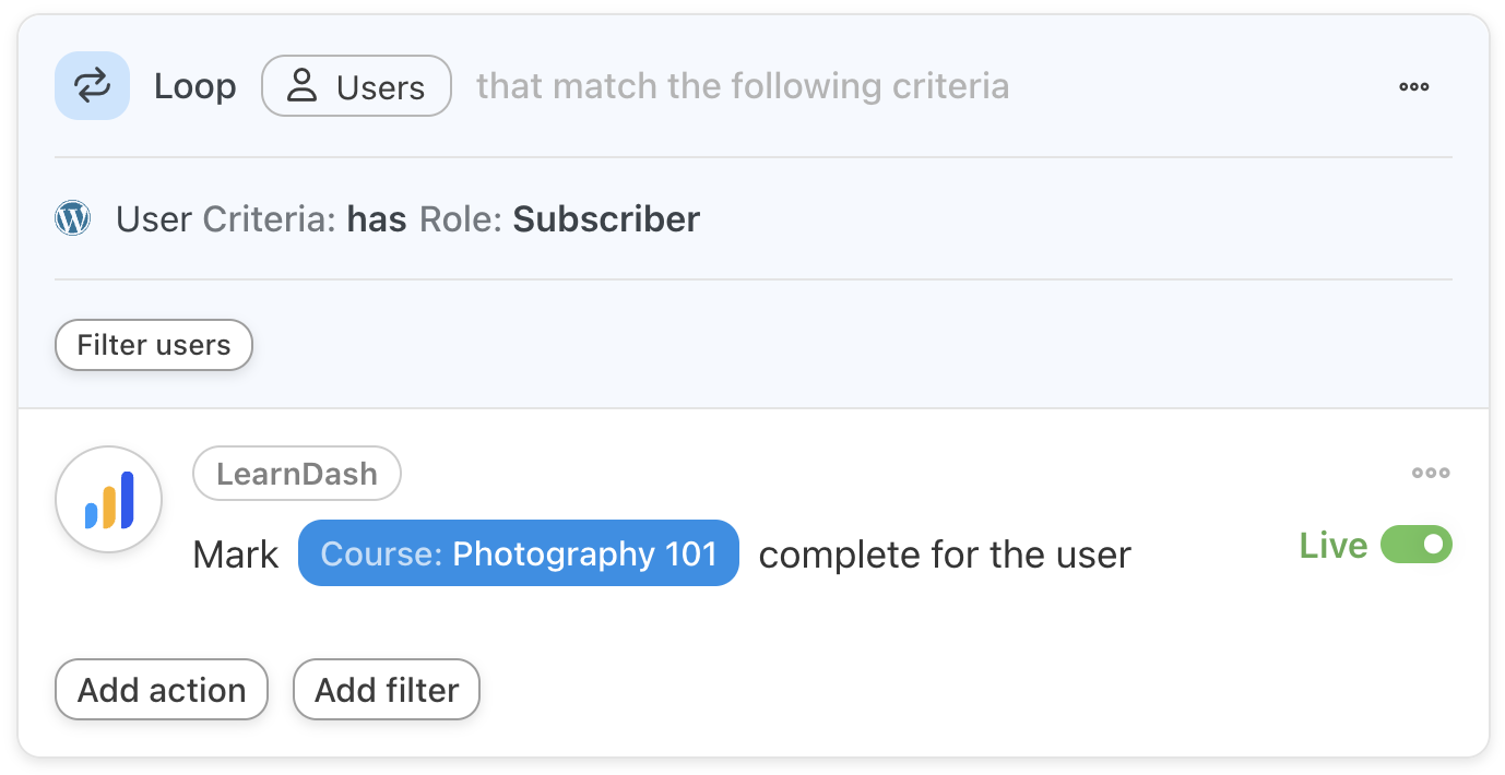 Once you’re finished, click Save filter. Your user loop should now look something like this: