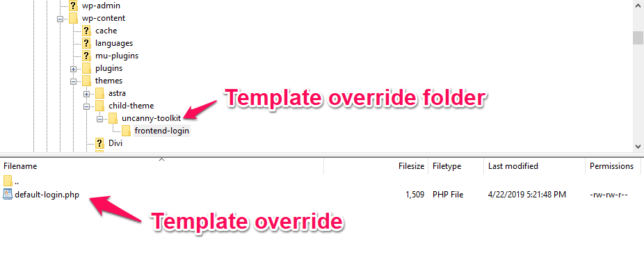 overriding uncanny-learndash-toolkit/src/templates/frontend-login/default-login.php would go in your-child-theme/uncanny-toolkit/frontend-login/default-login.php (note that the ‘templates’ part of the path has been dropped).