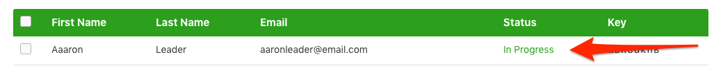 The individual report is accessible by clicking “In Progress” on any user with progress on the main Group Management page: