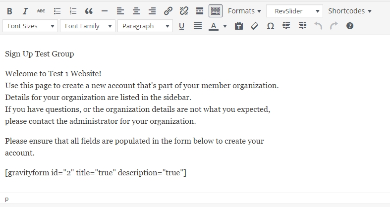 The Gravity Forms integration really is as simple as dropping the shortcode for a registration form on the page; up above there’s a screenshot of an example, and that really is all that’s required.