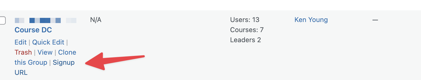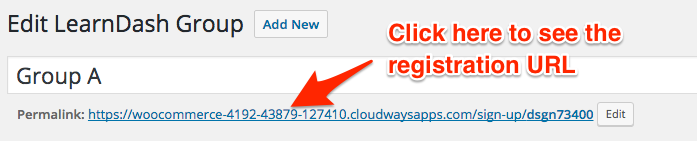 In the list of groups under LearnDash LMS > Groups, look for the Signup URL links under each group. Click the Signup URL link to reveal the registration URL.