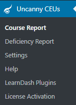 Once enabled, the plugin adds an Uncanny CEUs menu for administrators in /wp-admin/. There are 4 settings pages in this plugin: