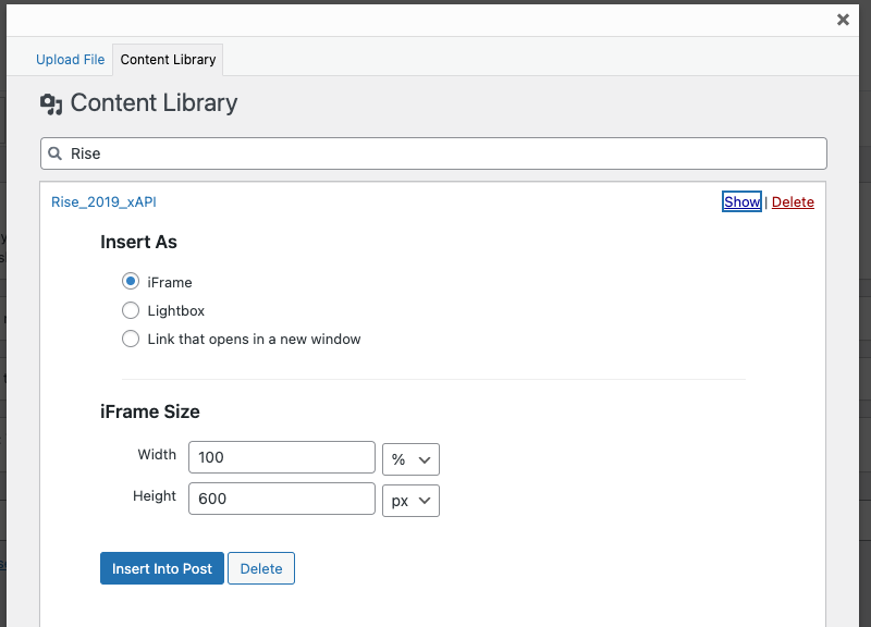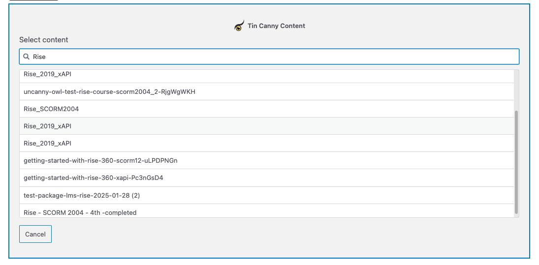 We use the Tin Canny reporting for Learndash plugin. I created a course in rise 360 and published for scorm 1.2. I received an error message when I tried to upload the course using the upload button in the Gutenberg editor. But the course appeared in the content library. So I added the course using the Select from Library button. In testing, The Tin Can Report doesn’t show any learner activity. Should it? Or do we have to upload the course through the Upload button? Thanks.