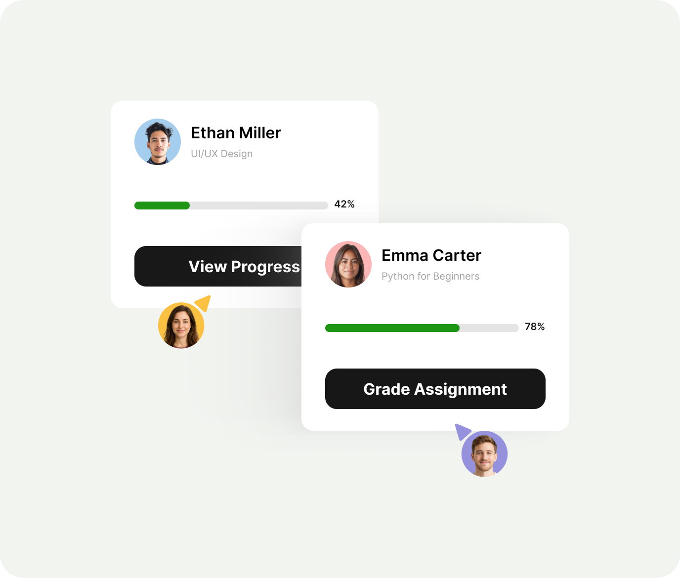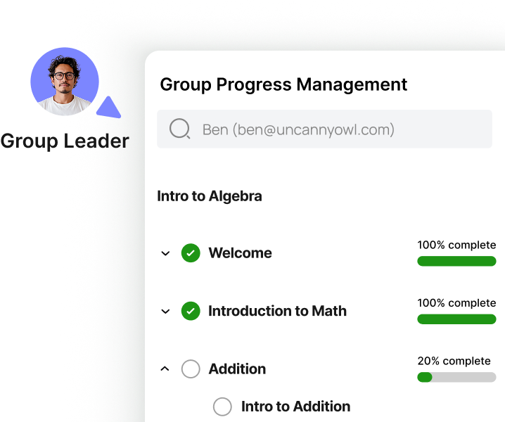 Provide Group Leaders with front-end reporting capabilities to track learner progress and identify areas for improvement within their groups.